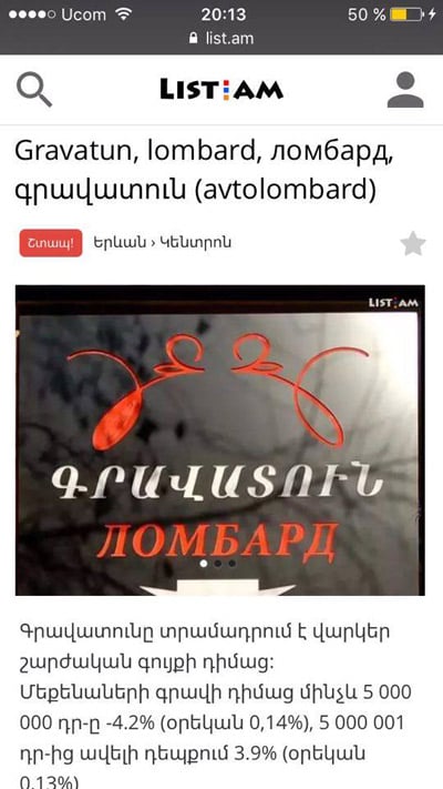 Թումանյան փողոցի վրա գտնվող «Արս Էլիտի» եւ քաղաքացու միջեւ կնքվել է վարկային պայմանագիր, նույն համարի գրավատոմս: Գրավատունը քաղաքացուն պետք է տրամադրեր 6 միլիոն 52 հազար 500 դրամի վարկ: Ըստ պայմանագրի, վարկը պետք է տրամադրվեր մինչեւ 13.07.2016 թվականը, իսկ երկարացման դեպքում նշված ժամկետը վարկը մարելու պայմանով՝ 0.13 տոկոսադրույքով: