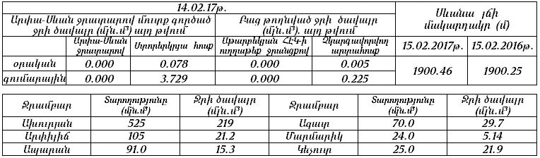Փետրվարի 16-ին սպասվում է փոփոխական ամպամածություն, տեղումների հավանականությունը փոքր է: 17-20-ը սպասվում է առանց տեղումների եղանակ: