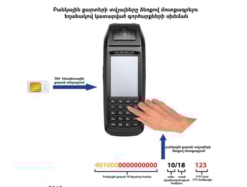 Հիշյալ տերմինալի օգտագործմամբ առանձնապես խոշոր չափերով գումարներ հափշտակելու նպատակով հանցավոր խմբի՝ ՌԴ-ում գտնվող անդամը Հայաստանի իր հանցակիցներին է ուղարկել Ավստրալիայի մի շարք քաղաքացիների անվամբ թողարկված բանկային քարտերի տվյալներ՝ 16-նիշանոց համարները, քարտերի վավերականության ժամկետները և ծածկագրերը։
