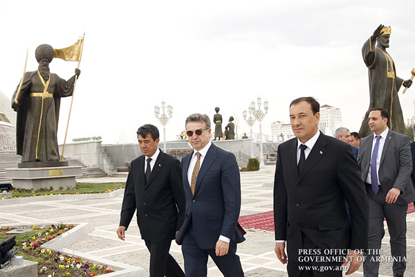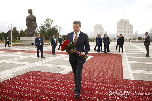 Վարչապետ Կարապետյանն Աշխաբադի քաղաքապետ Շամուհամմեդ Դուրդիլիևի ուղեկցությամբ այցելել է նաև Թուրքմենստանի անկախության հուշահամալիր և ծաղիկներ խոնարհել: