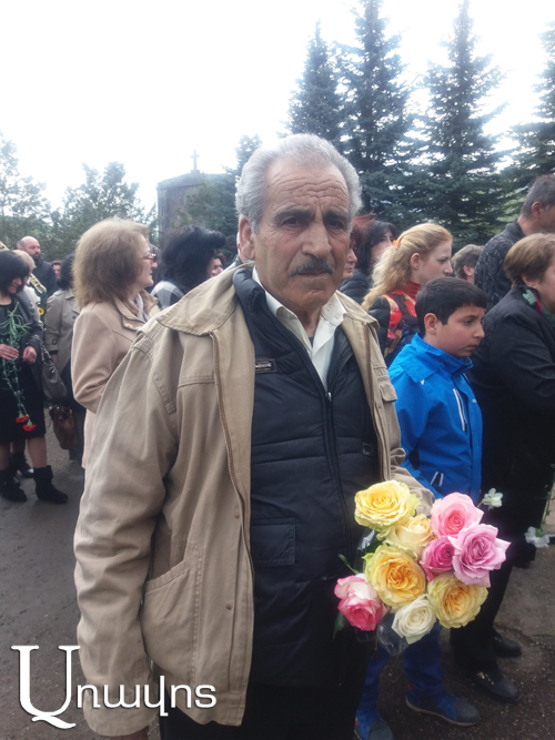 Մարիամ Սահակյանը յուրաքանչյուր տարի գալիս է հարգելու եւ ծաղիկներ խոնարհելու. «Ինձ համար կարեւոր է այս օրը, որ գալիս եմ այստեղ: Հոգիս կարծես թեթեւանում է: Թուրքիան ի վերջո պետք է ընդունի իր նախնիների կատարած ոճրագործությունն ու հաշվի նստի մեզ մետ: Մենք պետք է պահանջենք, այլ ոչ թե նստենք եւ սպասենք, թե երբ որեւէ մեկը մեզ համար ինչ-որ բան կանի: Մենք ինքներս պետք է մեր իրավունքները պաշտպանենք»: