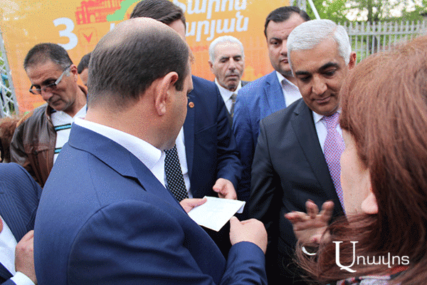 Այս անգամ էլ քաղաքացիներն իրար հերթ չտալով, անգամ իրար հրմշտելով փորձում էին մոտենալ Տարոն Մարգարյանին եւ իրենց խնդիրները ներկայացնել, ոմանք օգնություն էին խնդրում: