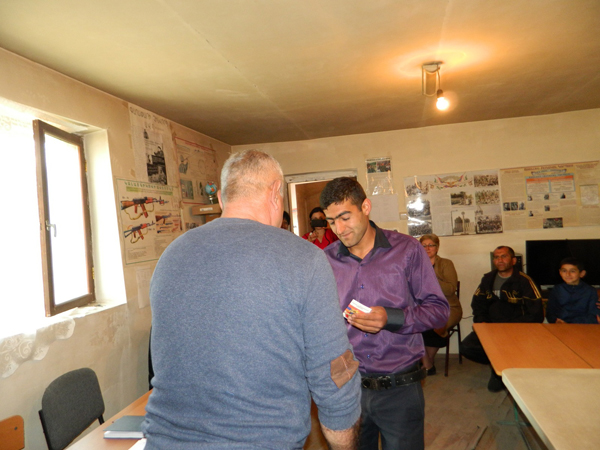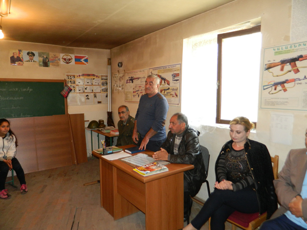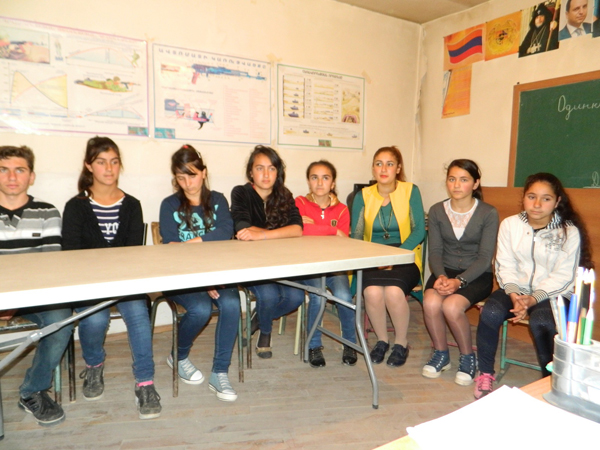 Արիության դասին ներկա էին դպրոցի զինղեկ, լեյտենանտ Հայկ Հարությունյանը, ուսուցիչներ, համայնքի ղեկավարը: Դասից հետո զրուցեցինք ուսուցչական անձնակազմի հետ: Այս ուստարում դպրոցը 10-12-րդ դասարաններ չունի: Տարրական օղակում կա 16 աշակերտ, որից 7-ը՝ 4-րդ դասարանում: 9-րդում սովորում են 5 աշակերտ՝ 3 աղջիկ, 2 տղա: Աշակերտներից 6-ը գալիս են հարևան Մելիքաշեն գյուղից հատկացված մեքենայով: Ուսուցիչներից 3-ը՝ Վիկտորյա Հարությունյան, Սյուզաննա Առաքելյան և Անի Պետրոսյան, դպրոցի նախկին սաներն են: Գրադարանից օգտվում են նաև համայնքի բնակիչները: