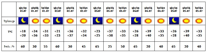 Հուլիսի 1-5-ը սպասվում է առանց տեղումների եղանակ: