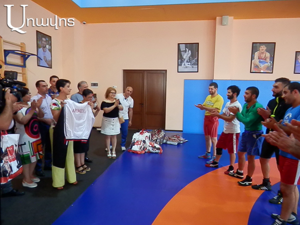 Այսօր ՀՀ սպորտի և երիտասարդության հարցերի նախարարության աշխատակիցները վարչության պետ Լեւոն Վահրադյանի գլխավորությամբ այցելեցին նրանց, ծանոթացան մարզումների ընթացքին, մարզահագուստներ հանձնեցին Սամսուն մեկնող 10 ըմբիշներին, 2 ձյուդոիստներին եւ հայկական պատվիրակության անդամներին: