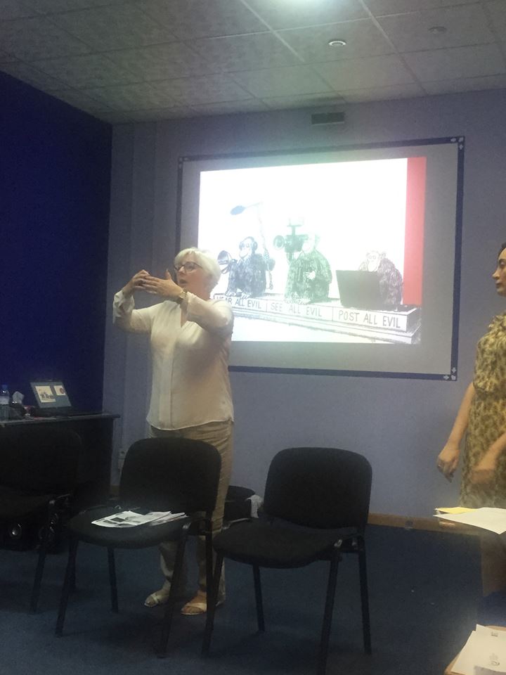 Դասընթացը կազմակերպել էր Մեդիա նախաձեռնությունների կենտրոնը, որը Անջելինա Ֆուսկոյի հետ միասին հրավիրել էր նաեւ հոգեբան Մարինե Պետրոսյանին: Հոգեբանը գտնում էր, որ տրավմայի ազդեցությունը չի կարող անցնել առանց կողմնակի ազդեցության, այսինքն` տրավմա տարած մարդը, տվյալ դեպքում թեժ կետերում կամ խոցելի խմբերի հետ աշխատած լրատվամիջոցների ներկայացուցիչները պետք է դիմեն հոգեբանական աջակցության: