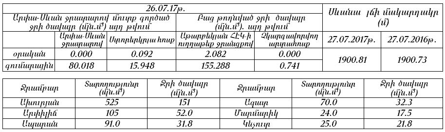 ՀՀ ԳԵՏԵՐԻ, ԼՃԵՐԻ ԵՎ ՋՐԱՄԲԱՐՆԵՐԻ ՎԻՃԱԿԸ: ՏՎՅԱԼՆԵՐ ՍԵՎԱՆԱ ԼՃԻ ՎԵՐԱԲԵՐՅԱԼ.