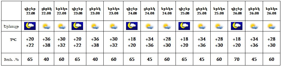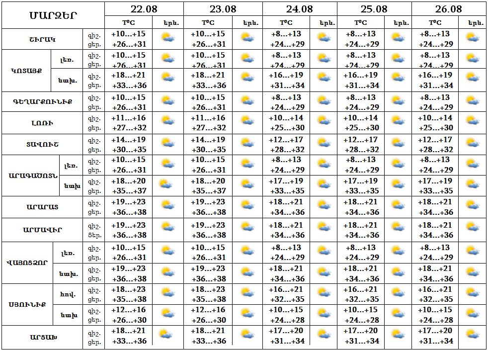 Օգոստոսի 22-26-ը սպասվում է առանց տեղումների եղանակ: