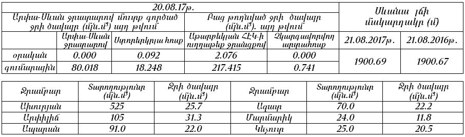 ՀՀ ԳԵՏԵՐԻ, ԼՃԵՐԻ ԵՎ ՋՐԱՄԲԱՐՆԵՐԻ ՎԻՃԱԿԸ: ՏՎՅԱԼՆԵՐ ՍԵՎԱՆԱ ԼՃԻ ՎԵՐԱԲԵՐՅԱԼ.