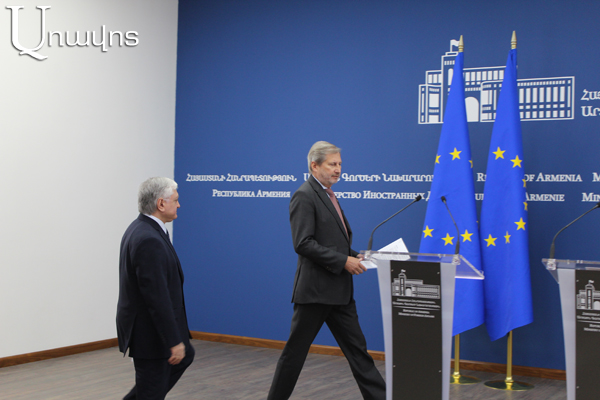 Հայաստան այցելած Եվրոպական հանձնաժողովի հարևանության և ընդլայնման հարցերով հանձնակատար Յոհանես Հանն այսօր ՀՀ ԱԳՆ-ում լրագրողների հետ հանդիպմանն ամփոփեց նախարար Էդվարդ Նալբանդյանի հետ բանակցությունների արդյունքները: Նա փաստեց, որ Եվրոպական միության օժանդակությունը Հայաստանի զարգացմանն ավելի տեսանելի է դառնում. «Մեր շահերից է բխում ունենալ կայուն եւ բարեկեցիկ Հայաստան` Հարավային Կովկասում»: