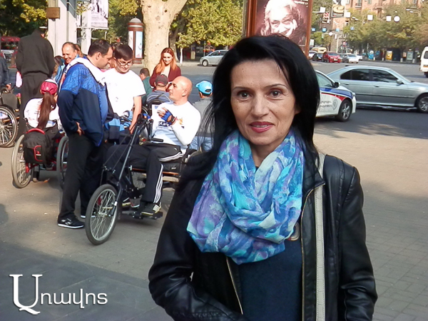 Հայաստանի հաշմանդամություն ունեցողների «Փյունիկ» միության ծրագրերի ղեկավար Սուսաննա Սարգսյանն Aravot.am-ին ասաց. «Անվասայլակներով մարաթոնը մեր կազմակերպության ավանդական ծրագրերից մեկն է, որի նպատակը հաշմանդամություն ունեցող անձանց հիմնախնդիրների իրազեկումն է հասարակությանը: Նրանք մեր հասարակության լիարժեք անդամներն են եւ նրանց խնդիրներին պետք է իրազեկված լինեն բոլորը, առաջին հերթին՝ որոշում կայացնող մարմինները, որպեսզի ճիշտ որոշումներ ընդունեն: Բոլորը պետք է իմանան, որ հաշմանդամություն ունեցող անձինք շատ դեպքերում ավելի լիարժեք են, քան մենք՝ այսպես ասած, ոչ հաշմանդամ մարդիկ: Նրանք ի զորու են գործողություններ, քայլեր անել, որ մենք պարզապես կարող ենք միայն երազել: Օրինակ, հենց այս մարաթոնը: Մասնակիցներն իրենց ֆիզիկական խնդիրների բացը լրացնում են կամային որակներով: Նրանք սայլակներով, հեծանվով, վազքով, քայլքով պետք է անցնեն 22 կիլոմետր՝ ցույց տալով բացառիկ արժանիքներ: Նրանք ունեն հասարակության լիարժեք անդամը լինելու բոլոր իրավունքները: Արդյոք իրենց առողջ համարող մարդիկ կարո՞ղ են, կամ ցանկություն ունե՞ն հաղթահարել այդ տարածությունը: Ավելին, մենք նրանցից սովորելու շատ բան ունենք, որովհետեւ նրանք իսկապես կարողանում են անել անհնարինը: Ես 25 տարուց ավելի աշխատում եմ հաշմանդամություն ունեցող անձանց հետ եւ այդ ամբողջ ընթացքում սովորում եմ նրանցից, սովորում եմ պայքարել, ինքս ինձ պաշտպանել… Երբ շատ հարցերում թիկունքիդ հենարան չես զգում, պետք է ուժեղ լինես:
