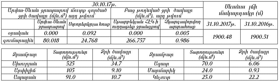 ՀՀ ԳԵՏԵՐԻ, ԼՃԵՐԻ ԵՎ ՋՐԱՄԲԱՐՆԵՐԻ ՎԻՃԱԿԸ: ՏՎՅԱԼՆԵՐ ՍԵՎԱՆԱ ԼՃԻ ՎԵՐԱԲԵՐՅԱԼ.