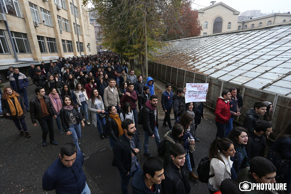 Ուսանողները նախ հավաքվեցին ԵՊՀ մաթեմատիկայի ֆակուլտետի մասնաշենքի մոտ: Ուսանողները տեղեկություններ ունեն, որ ԵՊՀ բոլոր մասնաշենքերի դռները կողպված են: Այստեղ ևս դուռը կողպված էր: Ծառայության պետը հայտնեց՝եթե ներքև իջնեք, դուռը կբացեմ: Ի վերջո, նա բացեց դուռը: