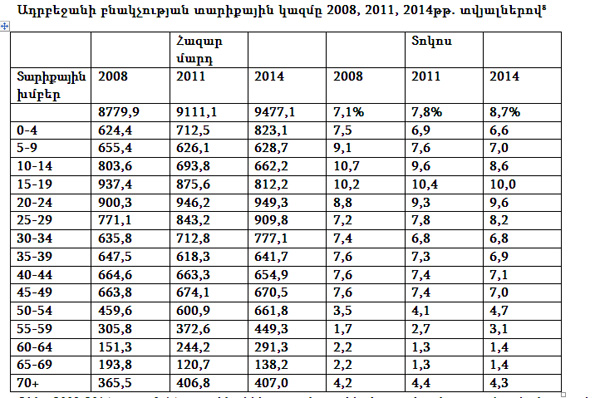 Թեև 2008-2014թթ. 0-14 տարեկանները տոկոսային հարաբերակցությամբ բնակչության ընդհանուր կազմում նվազում են գրանցել, սակայն բացարձակ թվային արտահայտությամբ այդ տարիքային խմբի ներկայացուցիչների թիվը կազմում է 2 մլն 114 հազար մարդ, կամ 2014թ. ամբողջ բնակչության 22,2 տոկոսը: Այդ տարիքային խմբի թիվը կազմում է ներկայիս Հայաստանի Հանրապետության մշտական բնակչության մոտ 75 տոկոսը: Առավել տպավորիչ է 15-29 տարեկան երիտասարդ բնակչության կառուցվածքը, որը կազմում է Ադրբեջանի բնակչության 27,8 տոկոսը կամ Վրաստանի ներկայիս բնակչության մոտ 70 տոկոսը: Բարձր ծնելիությունն ու բնական աճի բարձր ցուցանիշը նաև նպաստել են Ադրբեջանի 60 և ավելի տարիքային խմբի բնակչության թվաքանակի տոկոսային նվազմանը, որը 2008թ. համեմատ 2014թ. պակասել է 1,3 տոկոսով, և այդ տարիքային խումբը կազմում է Ադրբեջանի ընդհանուր բնակչության մոտ 7,1 տոկոսը: