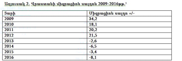 2009-2012թթ. միգրացիոն դրական սալդոն էականորեն կապված էր Ռուսաստանի հետ վատթարացած հարաբերությունների հետ, որի հետևանքով բազմաթիվ վրացիներ և Վրաստանի քաղաքացի էթնիկ փոքրամասնություններ Ռուսաստան մեկնելու և այնտեղ աշխատելու հնարավորություն չունեին: Այդ ժամանակահատվածում Վրաստանում բնակվող բազմաթիվ հայեր ձեռք բերեցին Հայաստանի Հանրապետության քաղաքացիություն, որով Ռուսաստան մեկնելու և այնտեղ աշխատելու հնարավորություն էին ստանում: Սակայն մյուս կողմից միգրացիոն հոսքերի վրա դրական ազդեցություն էին գործում այն բազմամիլիարդանոց տնտեսական ծրագրերը, որոնք իրականացվում էին Վրաստանում 2009-2012թթ.: Երկրի ներսում տնտեսական բարվոք վիճակը և նոր աշխատատեղերի ստեղծումը վրացիներին զերծ էին պահում այլ երկրներում աշխատանք ու գոյության միջոցներ փնտրելուց: Թեև 2013թ. Սահակաշվիլիի իշխանության հեռացումից հետո միգրացիոն հոսքերը կրկին բացասական են, սակայն ի տարբերություն Հայաստանի՝ գտնվում են բավականին ցածր ցուցանիշների վրա: Եվրամիության հետ վիզաների ազատականացման գործընթացը գործում է ոչ վաղուց, և փորձագետները դեռևս ռիսկեր չեն տեսնում այդ հիմքով միգրացիոն հոսքերի ավելացման համար, թեև չեն բացառում, որ այն կարող է մեծացնել արտագաղթի բացասական սալդոն:
