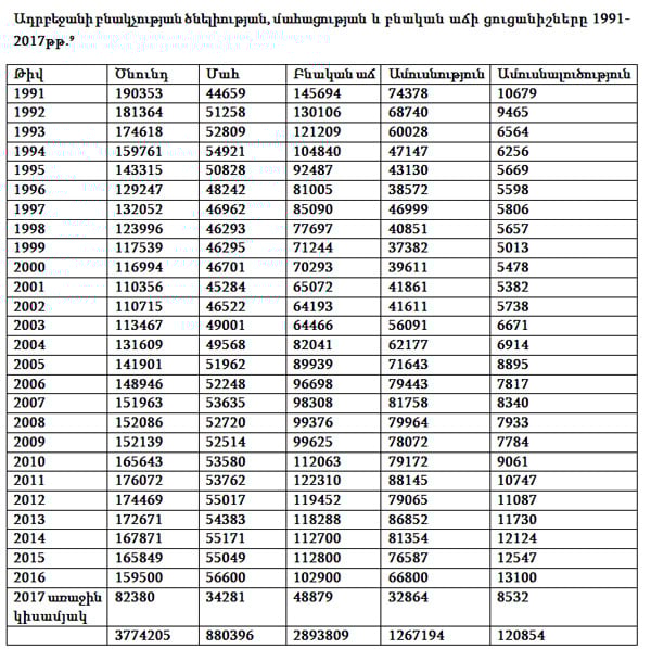 1991-2017թթ. Ադրբեջանում ծնվել է 3.774.205 երեխա, որը հավասար է ներկայիս Վրաստանի և գերազանցում է Հայաստանի ընդհանուր բնակչությանը: