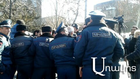Արդարադատության նախարարության քրեակատարողական վարչության շենքի դիմաց քիչ առաջ բողոքի ցույց անող քաղաքացիների եւ ոստիկանների միջեւ հրմշտոց տեղի ունեցավ: «Սասնա ծռեր» զինված խմբի անդամների համախոհները որոշեցին փակել Արշակունյաց պողոտայի երթևեկելի հատվածը, ոստիկաններն էլ ուժ գործադրելով նրանց փորձում են հեռացնել երթեւեկելի հատվածից:
