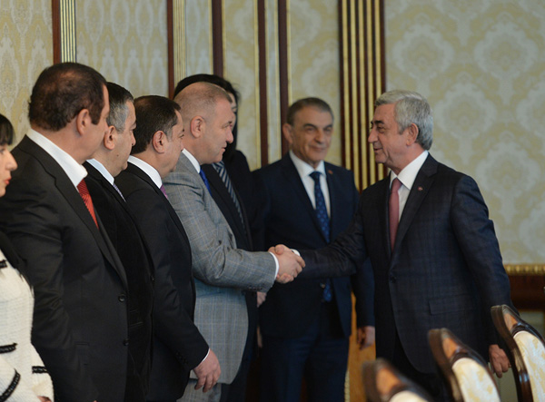 Նախագահ Սերժ Սարգսյանն այսօր հանդիպում է ունեցել Ազգային ժողովի ղեկավար կազմի հետ: Հանդիպման սկզբում Հանրապետության Նախագահը նշել է, որ թեև պարբերաբար հանդիպում է ունենում ԱԺ նախագահի, այլ պատգամավորների հետ, սակայն նման ձևաչափով հանդիպումն աննախադեպ է և նպատակ ունի առավելապես կենտրոնանալու Սահմանադրության փոփոխություններից հետո կառավարման նոր համակարգի պայմաններում իրականացվելիք մեծ ծավալի աշխատանքի, բոլորին հուզող արդիական մի շարք հարցերի վրա՝ նկատի առնելով, որ ԱԺ գործունեության իր տեսլականի մասին հանգամանորեն խոսել է դեռևս անցյալ տարվա մայիսի 18-ի ծավալուն ելույթում, և այդ ուղերձի դրույթներին կրկին չի անդրադառնա: