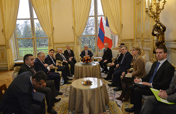 Նախագահ Սարգսյանը բարձր է գնահատել Ֆրանսիայի` որպես ԵԱՀԿ Մինսկի խմբի համանախագահող երկրի ջանքերը ԼՂ հիմնախնդրի խաղաղ կարգավորման ուղղությամբ՝ այդ համատեքստում կարևորելով ֆրանսիացի խորհրդարանականների այցերը Արցախ, ինչը, նրա կարծիքով, անգնահատելի նպաստ է բերում Արցախի խնդրի արդարացի կարգավորման գործին, բացահայտում` Արցախի վերաբերյալ Ադրբեջանի կողմից տարածվող կեղծիքը: