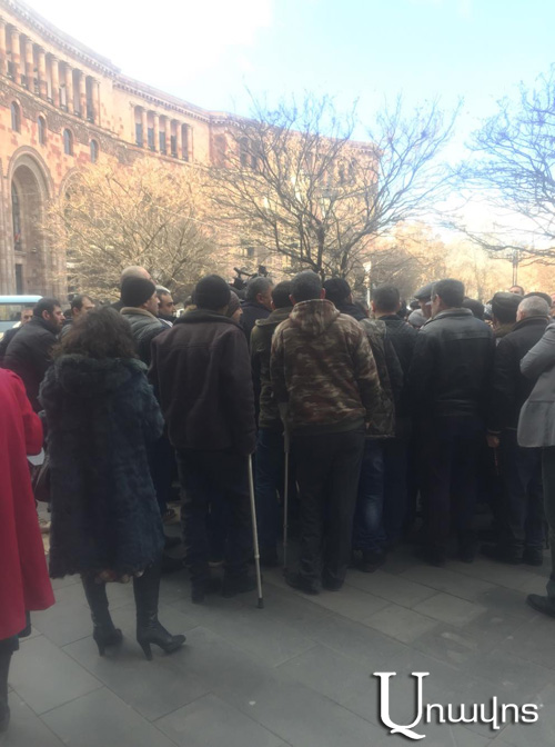 Այս պահին կառավարության շենքի առաջ հաշմանդամություն ունեցող մի խումբ քաղաքացիներ բողոքի ցույց են անում՝ պահանջելով չփակել այն կազմակերպությունը, որն իրենց պրոթեզներ է մատակարարում: Քաղաքացիները միկրոավտոբուսներով եկել էին Շամշադինից, Վարդենիսից եւ այլ բնակավայրերից: