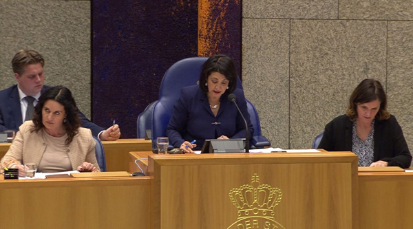 Առավոտյան Նիդերլանդների խորհրդարանի արտաքին հարաբերությունների հանձնախմբի նիստում, մինչ Արտաքին գործերի նախարար Սիգրիդ Կագի ելույթն ու հարցուպատասխանը, նիստը վարեց Պիա Դայկստրան (D66), ով ձայն տվեց Հայոց Ցեղասպանությանը վերաբերվող առաջարկությունների հեղինակ Ջոել Ֆորդևինդին (CU): Նա հստակ ներկայացրեց Հայոց Ցեղասպանությանը վերաբերող իր փաստարկները, ապա պատասխանեց իրենից աջ կողմում գտնվող ազգությամբ թուրք պատգամավորին: Առաջարկությունը սվիններով դիմավորեց Թունահան Կուզուն (DENK) ; Մյուս բոլոր պատգամավորները խոսեցին առաջարկության օգտին: