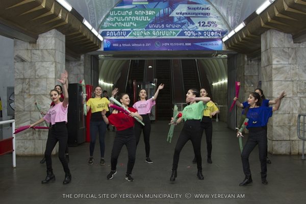 Երևանի քաղաքապետարանի նախաձեռնած տոնական միջոցառումների շարքից անմասն չէր մնացել նաև Երևանի մետրոպոլիտենը: Մետրոյի կայարաններում ու շարժակազմերում կանանց ու աղջիկներին ֆլեշ-մոբերի տեսքով հրամցվել են երաժշտական-պարային համարներ ու հաճելի անակնկալներ: