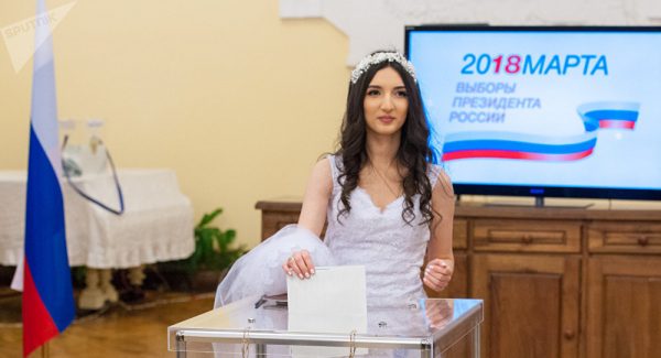 «Սպուտնիկ Արմենիայի» փոխանցմամբ էլ՝ այսօր մի երիտասարդ աղջիկ հարսանեկան զգեստով այցելել է Երեւանում ՌԴ դեսպանատուն՝ քվեարկելու: