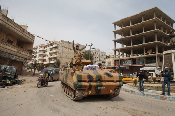 Մարտի 18-ին առավոտյան Թուրքիայի զինված ուժերը և վերջինիս դաշնակից «Սիրիայի ազատ բանակ» խմբավորումը «Ձիթենու ճյուղ» ռազմական օպերացիայի շրջանակներում ներխուժել են Աֆրին քաղաք և վերջինիս կենտրոնը վերցրել իրենց վերահսկողության տակ։