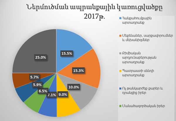 2017թ.-ին ՀՀ համախառն ապրանքաշրջանառությունը աճել է շուրջ 26.86%-ով՝ կազմելով $6425.6 մլն: Ընդ որում, արտահանման աճը կազմել է 25.2%՝ առաջին անգամ հատելով $2 մլրդ-ի սահմանագիծը, իսկ ներմուծման աճը՝ 27.8%՝ կազմելով $4,2 մլրդ: 2017 թվականին արտահանման կառուցվածքին «Իրազեկ քաղաքացիների միավորումը» անդրադարձել է այստեղ: Այժմ փորձենք քննարկել ներմուծումը: