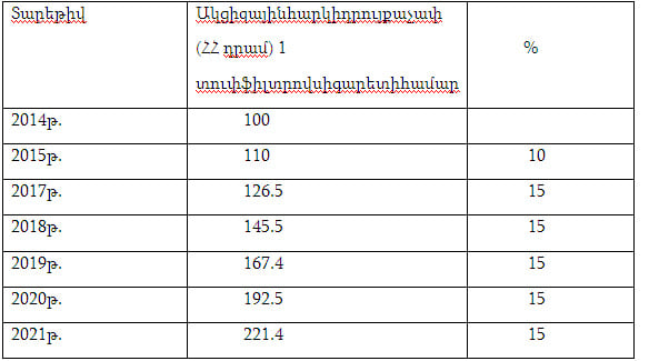 Տեղական արտադրության սիգարետի վերջին տարիներին արձանագրված թանկացումները կապված չեն եղել սիգարետի արտադրության շահութաբերությունն ավելացնելու հետ: Ուսումնասիրությունները վկայում են, որ հայրենական արտադրության սիգարետի թանկացումները կապված են եղել հարկային քաղաքականության հետ և ուղիղ համեմատական են ակցիզային հարկի դրույքաչափի բարձրացմանը: Ակցիզային դրույքաչափերի բարձրացումները կապված են նաև ԵԱՏՄ շրջանակներում մեր երկրի ստանձնած պարտավորությունների հետ: Տեղական արտադրության սիգարետները դեռ շարունակելու են թանկանալ, կապված ակցիզային հարկի դրույքաչափերի բարձրացման հետ: Այս աղյուսակում ներկայացված է դրույքաչափերի աճի դինամիկան մինչև 2021թ. ներառյալ: