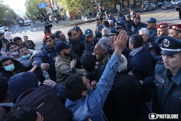 Նիկոլ Փաշինյանը մի խումբ համակիրների հետ շտապեց Թումանյան-Մաշտոց խաչմերուկ, որտեղ ոստիկանները բերման էին ենթարկում երիտասարդների: Նրան մոտեցավ Երեւանի փոխոստիկանապետ Վալերի Օսիպյանը՝ ներկայացնելու ոստիկանության գրավոր որոշումը՝ դադարեցնել ցույցերը՝ հաշվի առնելով դրանց բնույթը, բայց Փաշինյանը ոչ միայն չլսեց նրան, այլեւ պատռեց այդ հայտարարությունը: