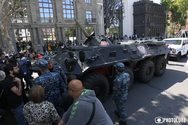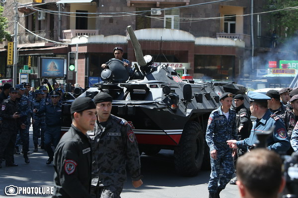 Լարված իրավիճակ էր Հանրապետության հրապարակին հատող Վազգեն Սարգսյան փողոցում: Ինչպես հայտնել էինք, այնտեղ ոստիկանական ուժեր են կուտակվել, նաեւ՝ տեխնիկա, 5-6 փշալարերի մեքենա: