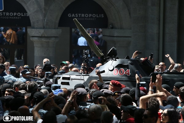 Ոստիկանությունը БТР է բերել եւ ուզում է տեղաշարժել, քաղաքացիները պառկել են BTR-ի տակը եւ թույլ չեն տալիս: Ոստիկաններին հաջողվեց ակերի տակից դուրս բերել քաղաքացիներին: