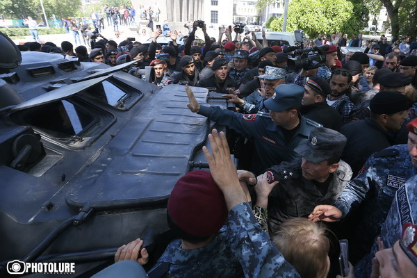 Այս պահին ոստիկանները կարծես թե ուզում են շրջափակել կառավարության շենքը: