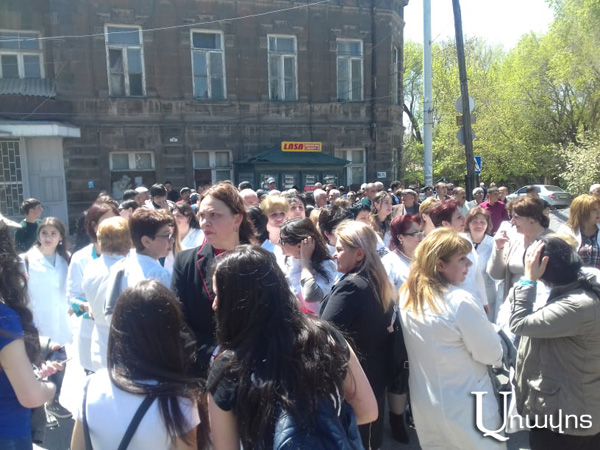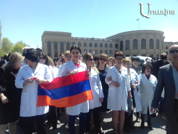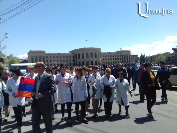 Այսօր սպիտակ խալաթներով ցույցի են դուրս եկել նաեւ բժիշկները: Բազմամարդ ցույցը գլխավորում են Շիրակի թեմի հոգեւորականները՝ փայտյա խաչերի ուղեկցությամբ: