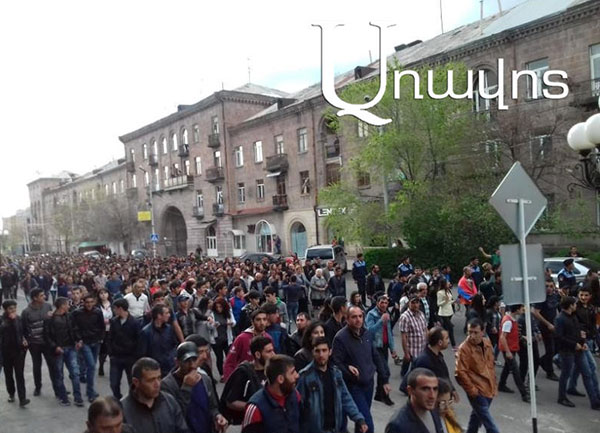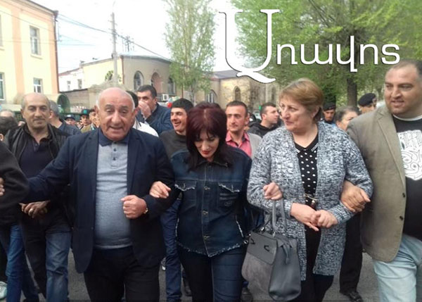 Բազմամարդ երթի ժամանակ բարձրախոսը տրամադրեցին ապրիլյան պատերազմի ժամանակ Ջեբրայիլում նահատակված փոխգնդապետ Ալեքսան Առաքելյանի հորը՝ Գևորգ Առաքելյանին։ Նա ասաց․ «2016 թվականի ապրիլին զոհված 110-ի արյունը պատասխանատուների վզին է, միացում ու պատժում դրանց, մենք ձեր հետ ենք»։