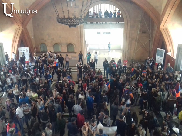 Գյումրիում մեծ թվով ցուցարարներ Վարդանանց հրապարակից քայլերթով շարժվեցին դեպի կայարան` Հարավկովկասյան երկաթուղու տնօրինությանը ամոթանք տալով, որ չեն թույլատրել մասնակցելու ցույցերին: