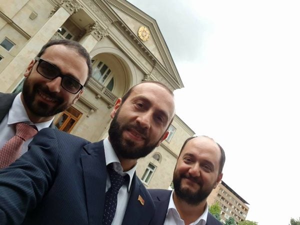 Տիգրան Ավինյանը, Արարատ Միրզոյանը եւ Արայիկ Հարությունյանը Բաղրամյան 26-ում: Լուսանկարը՝ ֆեյսբուքից