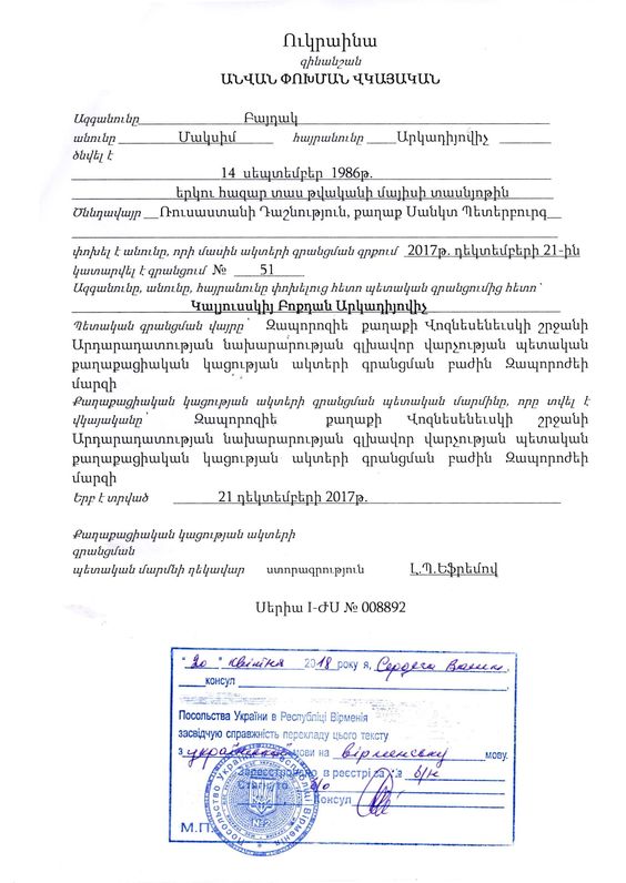 Բոգդան Կալիուսսկին Հայաստանի Հանրապետությունում ձերբակալվել է 2018 թ. մարտի 31-ին՝ փաստաթղթերի կեղծման և պետական սահմանն ապօրինի հատելու մեղադրանքով: Իսկ 2018 թ. ապրիլի 1-ին նա կալանավորվել է և այժմ գտնվում է «Նուբարաշեն» ՔԿՀ-ում: