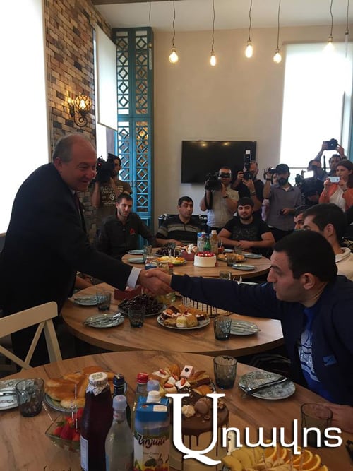 ՀՀ նախագահ Արմեն Սարգսյանն այս պահին գտնվում է Հայրենիքի պաշտպանի վերականգնողական կենտրոնում: Նախագահն այցելել է՝ շնորհավորելու Առաջին Հանրապետության տոնի առիթով: Նախագահը վիրավոր զինծառայողների հետ նախաճաշեց, մաղթեց նրանց շուտափույթ առողջություն, ասաց, որ հիմա էլ են նրանք գտնվում ճակատում եւ պետք է պայքարեն առողջանալու, ոտքի կանգնելու համար, որպեսզի մյուս տարի Հանրապետության 101 ամյակը Սարդարապատում միասին տոնեն:
