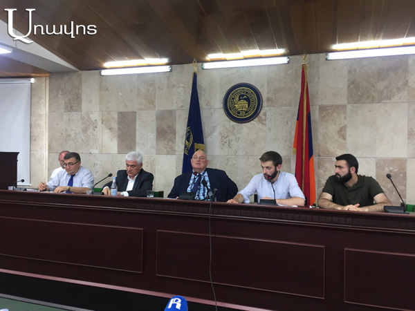 Ռեկտորի ձեւակերպմամբ. «Իրենց պահանջների մի զգալի մասը սուբյեկտիվ է…Իմ մե՞ղքն է, որ կարմիր բերետավորները մտել են տարածք, երբ ես ժամանակին խնդրել եմ ոստիկանապետին, որ համալսարանում ոստիկան չլինի, քանի որ համալսարանն ազատ տարածք է: Եթե հիմա այն ժամանակվա իշխանությունները գտել են, որ նրանք պետք է մտնեն, ես դրա առաջը չէի կարող առնել: Գնումների մասին էլ հերյուրանքներ եղան, դրանք ակնհայտ սուտ տեղեկություններ են, որոնք պետք է ապացուցել»: