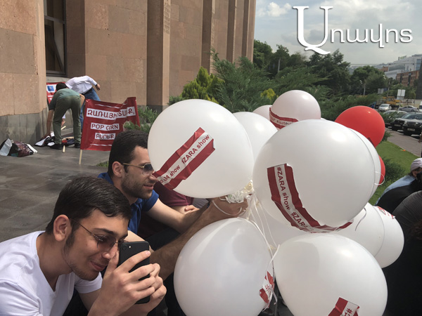 «Մենք այսօր այստեղ ենք, որովհետեւ նրա նմանները տեղ չունեն, եւ ապաքաղաքական գործողություններ են իրականացնում: Նստենք, սպասենք, էդ կինոն, որ խոստացել ա Զարուհի Փոստանջյանը, իրականացնելո՞ւ է, թե՝ չէ»,-ասաց ցուցարարներից մեկը՝ «Ազգային արժեքների պաշտպանման ճակատ» ՀԿ-ի նախագահ Սևան Աղաջանյանը, նշելով՝ «Ֆեյսբուքով կոչ ենք արել ու հավաքվել»: