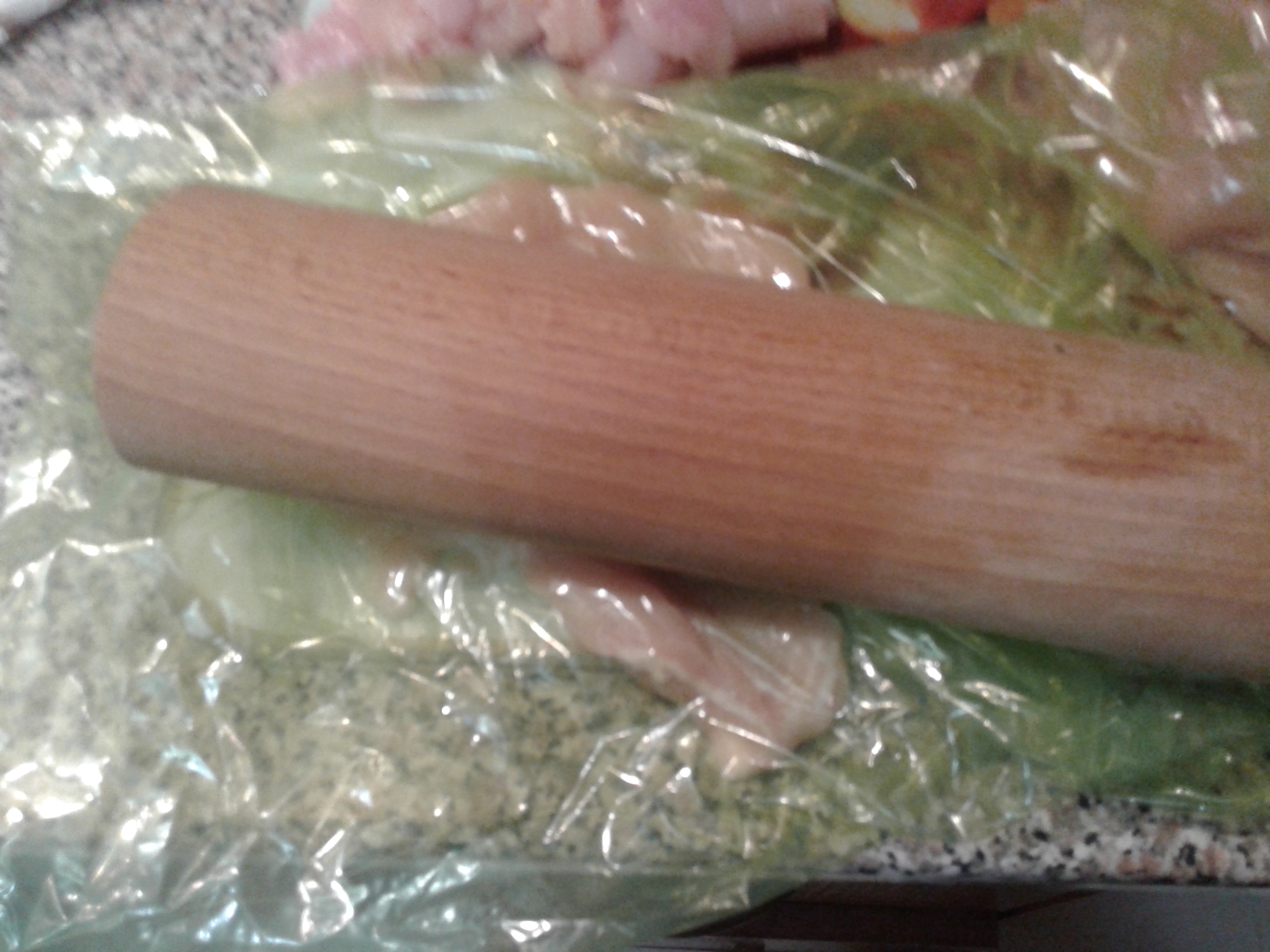 Բացելուց հետո ծածկեք պոլիէթիլենե թաղանթով, կամ դրեք սննդային տոպրակների մեջ եւ լավ ծեծեք գրտնակով կամ թակիչով: