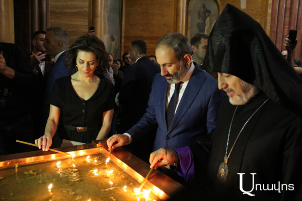 Մոսկվայի հայկական եկեղեցական համալիրի գլխավոր սուրբ Պայծառակերպություն եկեղեցում Սրբազան հայրը վարչապետի եւ նրա տիկնոջ հետ միասին մոմ վառեցին։