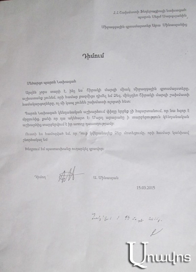 «Քաղաքային իշխանություններն էլ ուշադրություն պիտի դարձնեն, վերջն անհարմար է, եթե իրենք ունեն տվյալներ, որ Հովիկ Խալիկյանը կապ ունի այդ դպրոցի հիմնադրման հետո, թող թողնեն, եթե չունեն, արագ հեռացնեն, վերջը պատմություն է, չի կարելի պատմությունն աղավաղել։ Ես էլի եմ ասում՝ դիվանագիտությունն այլ բան է, հաճոյանալն այլ բան է։ Երևի մտածում էին՝ Սերժ Սարգսյանի մտերիմն է, պետք չէ հանել, հիմա ուզում է անունը գրվի, թող գրվի, կարող է քաղաքին դոտացիա գա, լարվածություն չստեղծենք։ Իշխանափոխությունից հետո ի՞նչն է հետ պահում անունը հանելուց, որ ոլորտը նայում ես, կոռուպցիա կա, բարեկամություն, քավոր- սանիկություն կա։ Ժամանակն է , որ մի քիչ էլ ուշադրություն դարձնեն այս ոլորտին, ասենք Գյումրիում բացված երկրորդ դպրոցը տվեցին կրիմինալին, կրիմինալն ուր, շախմատն ուր։ Ես ֆեդերացիայի նիստում բարձրաձայնել եմ այս հարցը, բայց նիստին ներկա Սերժ Սարգսյանն անջատել տվեց տեսախցիկներն ու անպատասխան թողնելով՝ իր հետագա քայլերով ցույց տվեց, որ շախմատի կարգախոսը, այն է՝ «գենս ունա սումուս», մի ընտանիք ենք, կրիմինալն էլ մեր ընտանիքից է», -ասում է Արա Մինասյանը։