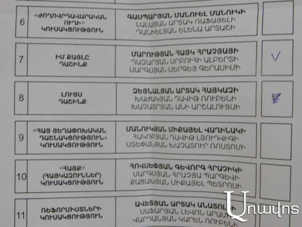 Անվավեր քվեաթերթիկների մեծ մասը «Իմ քայլը» դաշինքի օգտին էր, ընտրողները ջնջել էին բոլորին ու թողել միայն Հայկ Մարությանի տողը, կամ խաչ էին քաշել բոլորի վրա, բացի «Իմ քայլը դաշինքից»: Ընտրողներից մի քանիսը սահմանված նմուշի V-աձեւ նշանի փոխարեն ստորագրել էին կամ այլ նշան դրել: