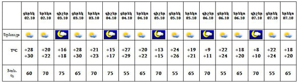 Հոկտեմբերի 2-ին քաղաքի առանձին հատվածներում հնարավոր է թույլ անձրև, 3-7-ը սպասվում է առանց տեղումների եղանակ:
