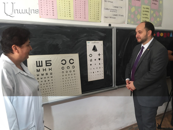 ԿԳ նախարարի պաշտոնակատարը ոչ միայն ներկա գտնվեց երեխաների ակնային զննումներին, այլեւ խնդրեց զննել իր տեսողությունը: Արայիկ Հարությունյանը կարեւորեց նախագծի իրականացումը:
