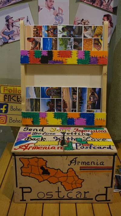 Փոստքարտերի տարածման և վաճառքի համար ևս գտնվել է ինքնատիպ լուծում: Տեղադրվելու է 3 փոստարկղ, ինչպես նաև 4 վահանակ: Զբոսաշրջիկը, այցելուն կարող է գնել փոստքարտը` վճարելով 500 դրամ, կամ էլ իր նախընտրած քարտը գցել արկղի մեջ` նշելով հասցեատիրոջը, վճարելով ևս 250 դրամ ծառայության վճար: