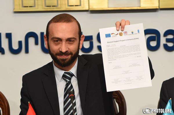 Մինչ այդ ՀՀ առաջին փոխվարչապետի պաշտոնակատար Արարատ Միրզոյանը, Հայաստանում ԵՄ պատվիրակության ղեկավար Պյոտր Սվիտալսկին, Հայաստանում Գերմանիայի դեսպանը, ՀՀ-ում Մեծ Բրիտանիայի եւ Հյուսիսային Իռլանդիայի Միացյալ Թագավորության դեսպանը, ՀՀ-ում Շվեդիայի դեսպանության գործերի հավատարմատարը ու ՀՀ-ում ՄԱԿ-ի մշտական համակարգող, ՄԱԶԾ մշտական ներկայացուցիչը ստորագրեցին փաստաթուղթ՝ Հայաստանում դեկտեմբերի 9-ին կայանալիք արտահերթ խորհրդարանական ընտրությունների անցկացման համար ֆինանսական աջակցություն տրամադրելու մասին։